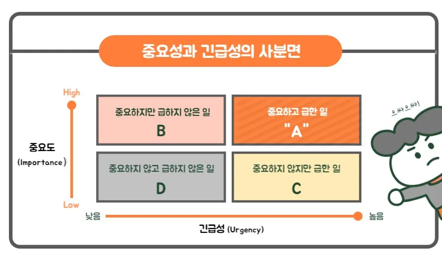 해야 할 일들, 하고 싶은 일들에도 그 중요성과 긴급성이 각기 다르기 때문입니다.